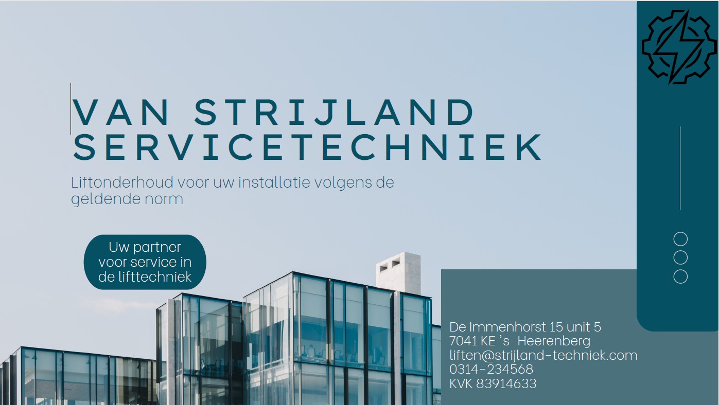 b. Opdrachtnemer (c.q. technisch aannemer): Van Strijland servicetechniek , gevestigd te ’s-Heerenberg aan De Immenhorst 15 Unit 5, geregistreerd onder Kamer van Koophandel nummer 83914633, tevens de gebruiker van deze algemene voorwaarden. Onder de opdrachtnemer wordt mede verstaan alle geregistreerde handelsnamen onder het genoemde nummer van de Kamer van Koophandel.